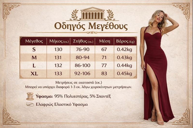 Αυτό το φόρεμα συνδυάζει την κομψότητα με την αριστοκρατική αίσθηση, αποτελώντας το απόλυτο κομμάτι για κάθε γυναικείο ντουλάπι. Ο μοναδικός σχεδιασμός με δέσιμο και το ψηλό σκίσιμο αναδεικνύουν τις γραμμές του σώματος, ενώ η ανοιχτή πλάτη προσθέτει μία πινελιά σαγηνευτικότητας και γοητείας. Είτε για γάμο, δείπνο είτε για οποιαδήποτε άλλη επίσημη περίσταση, αυτό το φόρεμα θα σε κάνει το επίκεντρο κάθε εκδήλωσης.